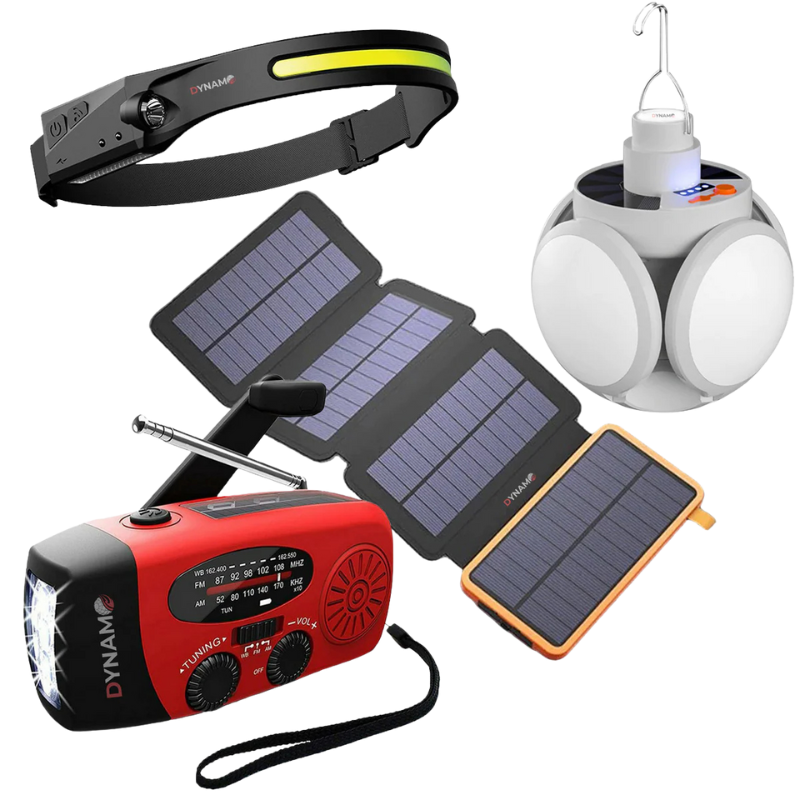 Egal ob Sie sich gerade auf einem Ausflug befinden oder Sie plötzlich von einem Stromausfall überrascht werden – mit dem Dynamo™ Notfall Set sind Sie jederzeit abgesichert!