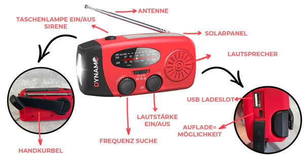 Das Set wurde speziell für Notfälle entwickelt. Es enthält mehrere Geräte, die komplett ohne Steckdosenstrom funktionieren – z. B. durch Solarenergie oder Handkurbel. So können Sie jederzeit Licht erzeugen, Radio hören und Ihre USB-Geräte aufladen – auch bei totalem Stromausfall.